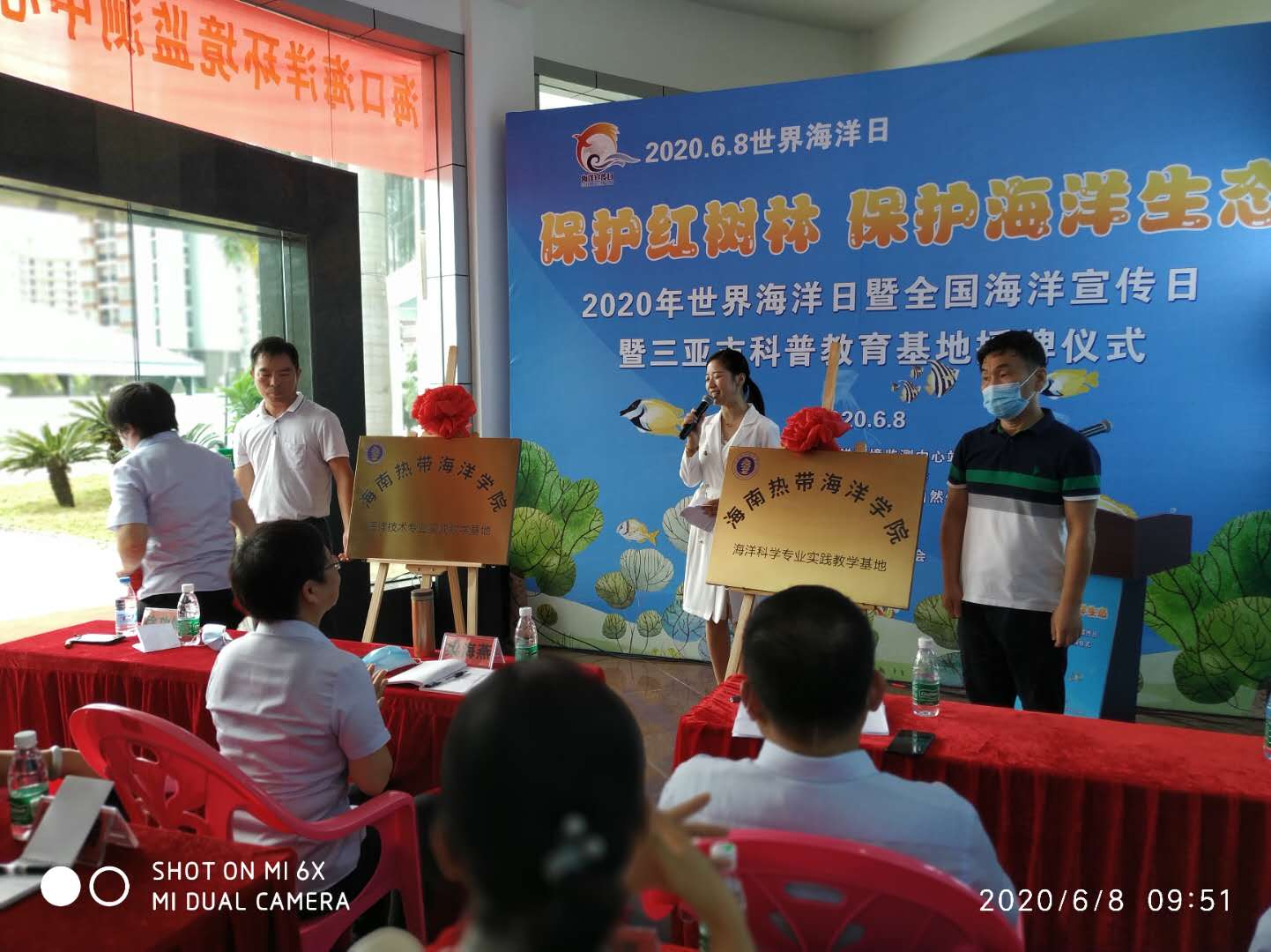 6月8日,在世界海洋日暨全国海洋宣传日到来之际,三亚海洋环境监测站举办“海口海洋环境检测中心站三亚市科普教育基地授牌仪式”,我院徐元哲副院长、专业负责人王连明教授、韩玉老师参加了揭牌仪式。